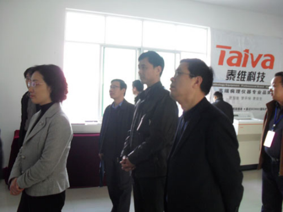 左起:時任市藥監(jiān)局局長李貴平,副市長王芳,藥監(jiān)局醫(yī)療器械科科長宋海寅,泰維董事長汪洋